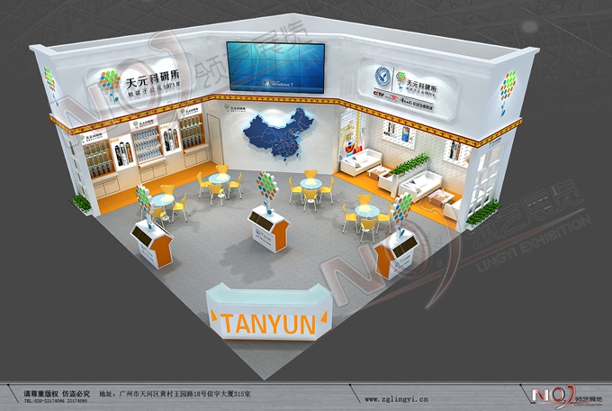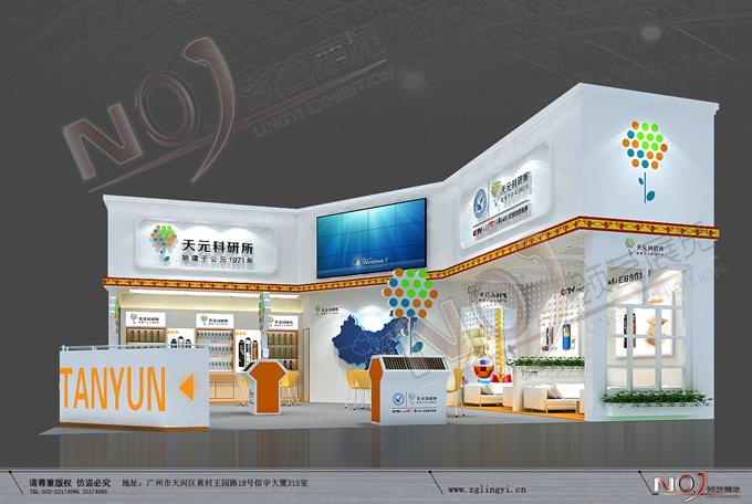 契合天元的品牌形象和產(chǎn)品特性,采用矩形結構,再搭配燈具燈光的效果,襯托出展位高端、時尚的氛圍,突出一種現(xiàn)代、大氣的時尚品味。