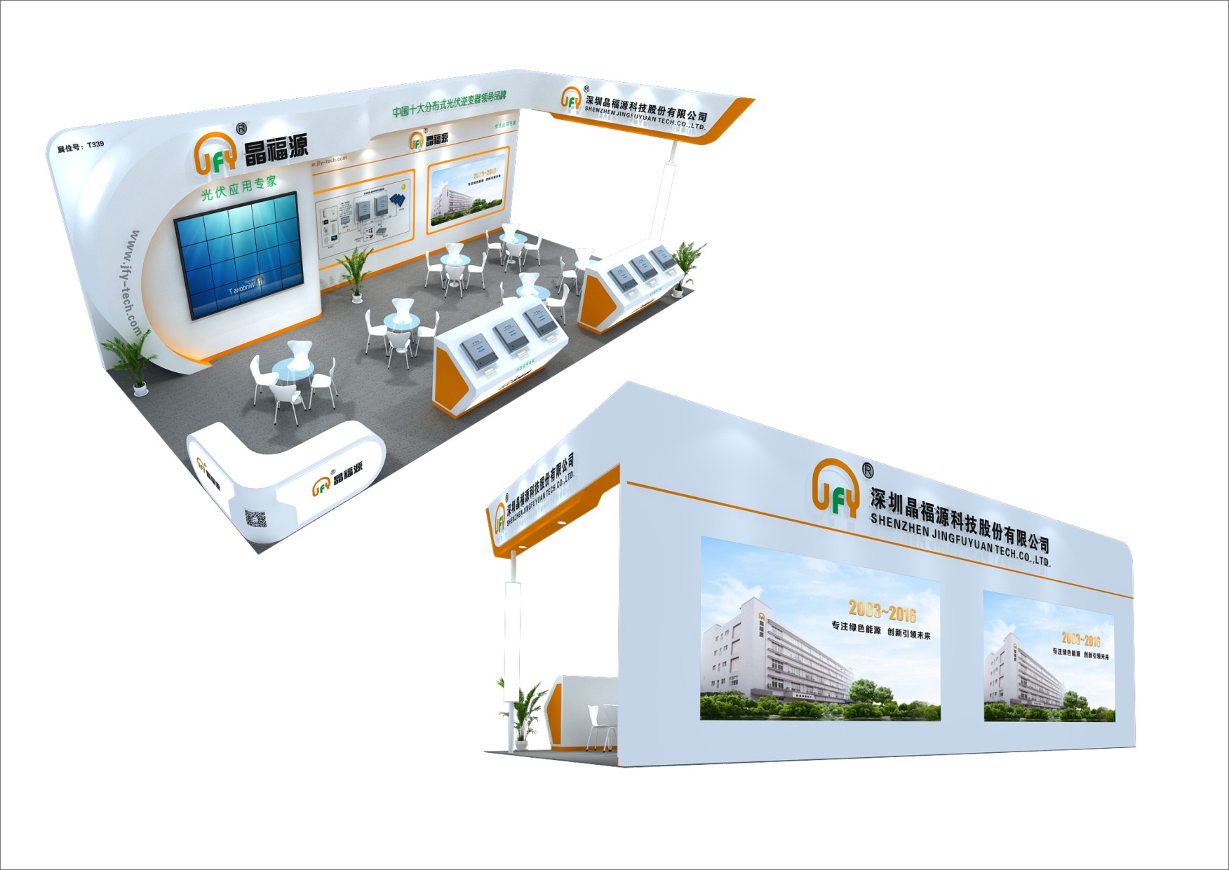 巧妙的運用白色搭配橘色,著重突出品牌和產(chǎn)品的展示,使整個展位高檔大氣