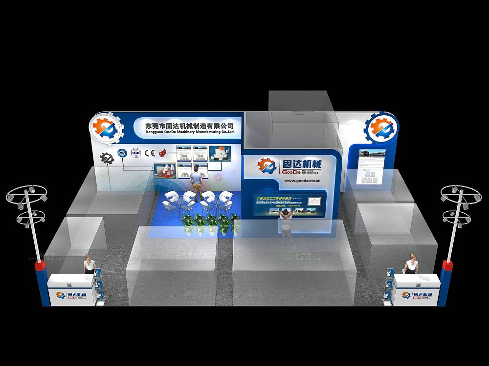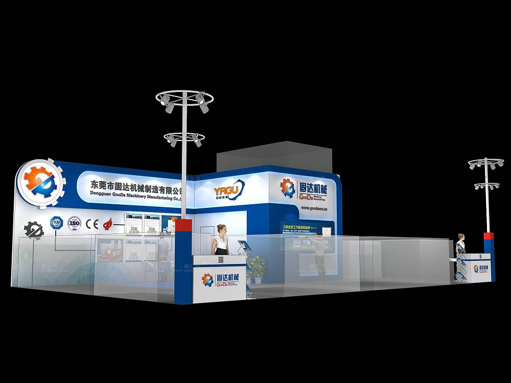 契合固達(dá)機(jī)械的品牌形象和產(chǎn)品特性,采用開(kāi)放型結(jié)構(gòu),再搭配燈具燈光的效果,襯托出展位大氣、豪華的氛圍,突出一種簡(jiǎn)約、時(shí)尚的品味。