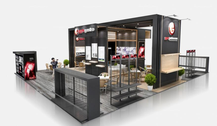 巧妙的運(yùn)用紅色、黑色作搭配,著重突出品牌和產(chǎn)品的展示,使整個(gè)展位時(shí)尚新穎。