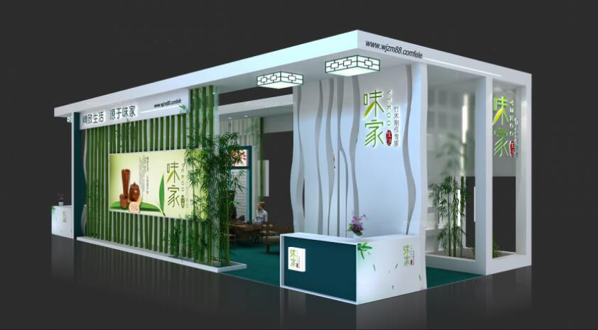 契合味家的品牌形象和產(chǎn)品特性,采用矩形結(jié)構(gòu),再搭配燈具燈光的效果,襯托出展位大氣、豪華的氛圍,突出一種簡(jiǎn)約、時(shí)尚的品味。