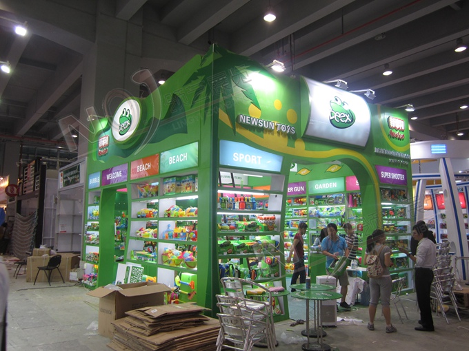 巧妙的運(yùn)用綠色作主色調(diào),著重突出品牌和產(chǎn)品的展示,使整個(gè)展位大氣又明快。