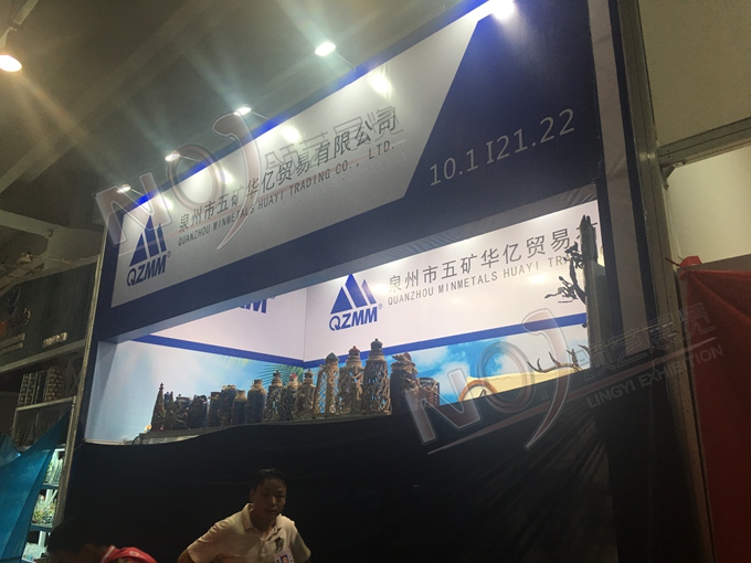 契合泉州五礦集團(tuán)的品牌形象和產(chǎn)品特性,采用矩形結(jié)構(gòu),再搭配燈具燈光的效果,襯托出展位高端、時(shí)尚的氛圍,突出一種現(xiàn)代、大氣的時(shí)尚品味。
