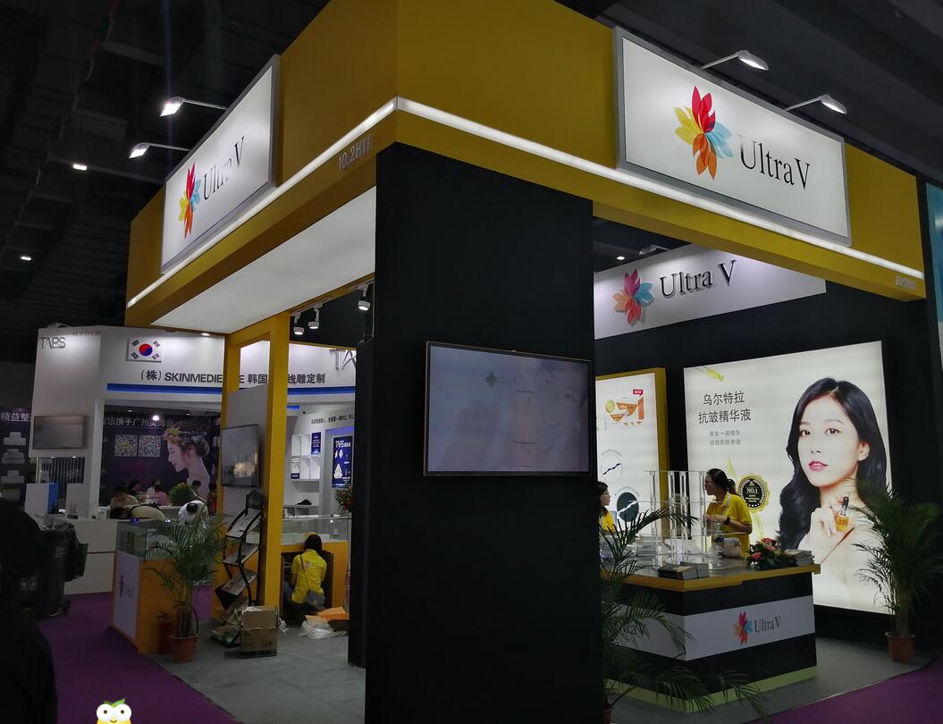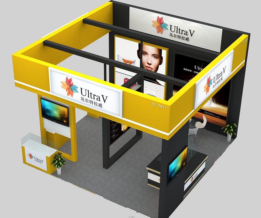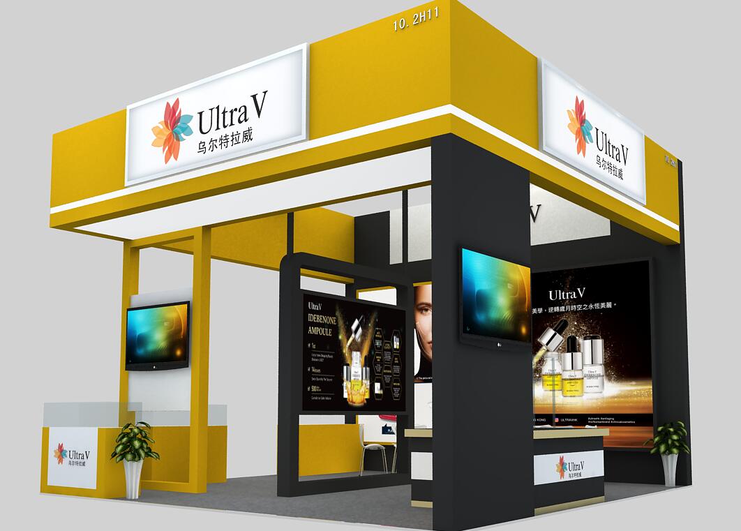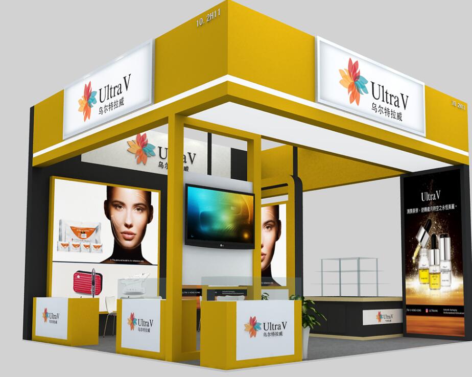 契合Ultra V的品牌形象和產(chǎn)品特性,采用弧型結(jié)構(gòu),再搭配燈具燈光的效果,襯托出展位大氣、豪華的氛圍,突出一種簡(jiǎn)約、時(shí)尚的品味。
