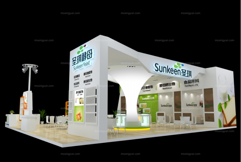 巧妙的運用白色作主色調(diào)搭配黃色,著重突出品牌和產(chǎn)品的展示,使整個展位明亮又時尚。