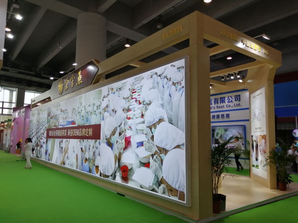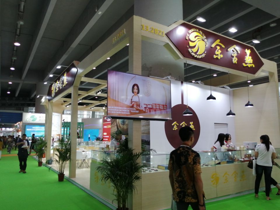 契合余舍燕的品牌形象和產(chǎn)品特性,采用開放結構,再搭配燈具燈光的效果,襯托出展位大氣、豪華的氛圍,突出一種簡約、時尚的品味。