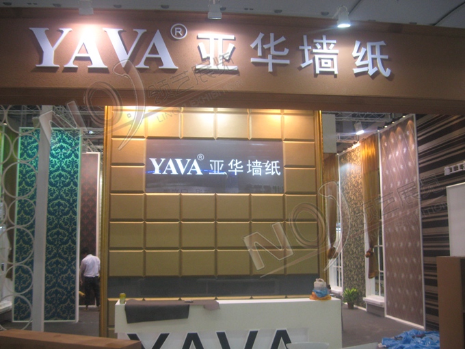 契合亞華墻紙的品牌形象和產(chǎn)品特性,采用矩形結(jié)構(gòu),再搭配燈具燈光的效果,襯托出展位時尚、典雅的氛圍,突出一種大氣、高端的時尚品味。