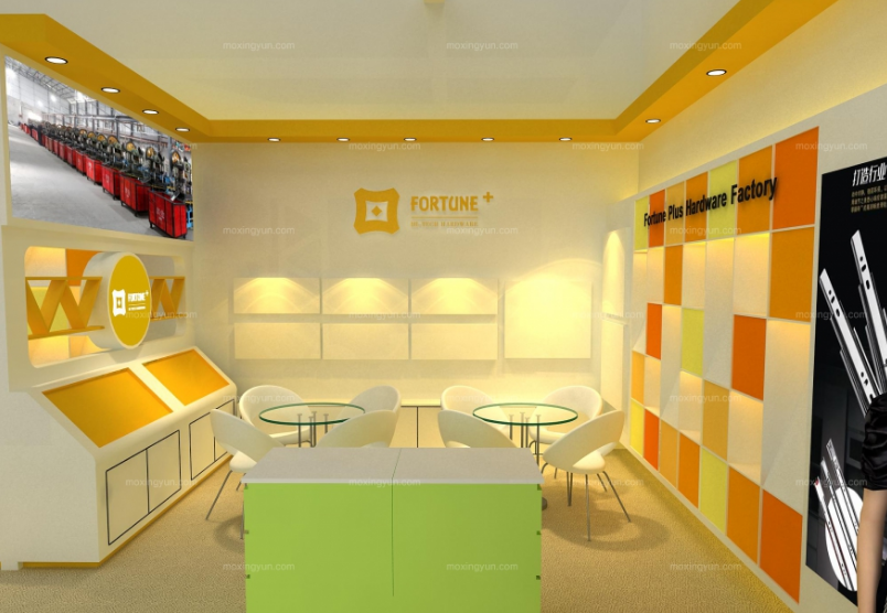 巧妙的運用黃色、白色作搭配,著重突出品牌和產品的展示,使整個展位明亮時尚。