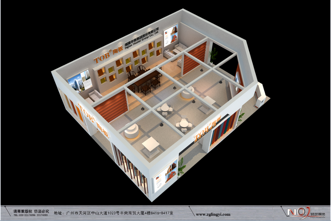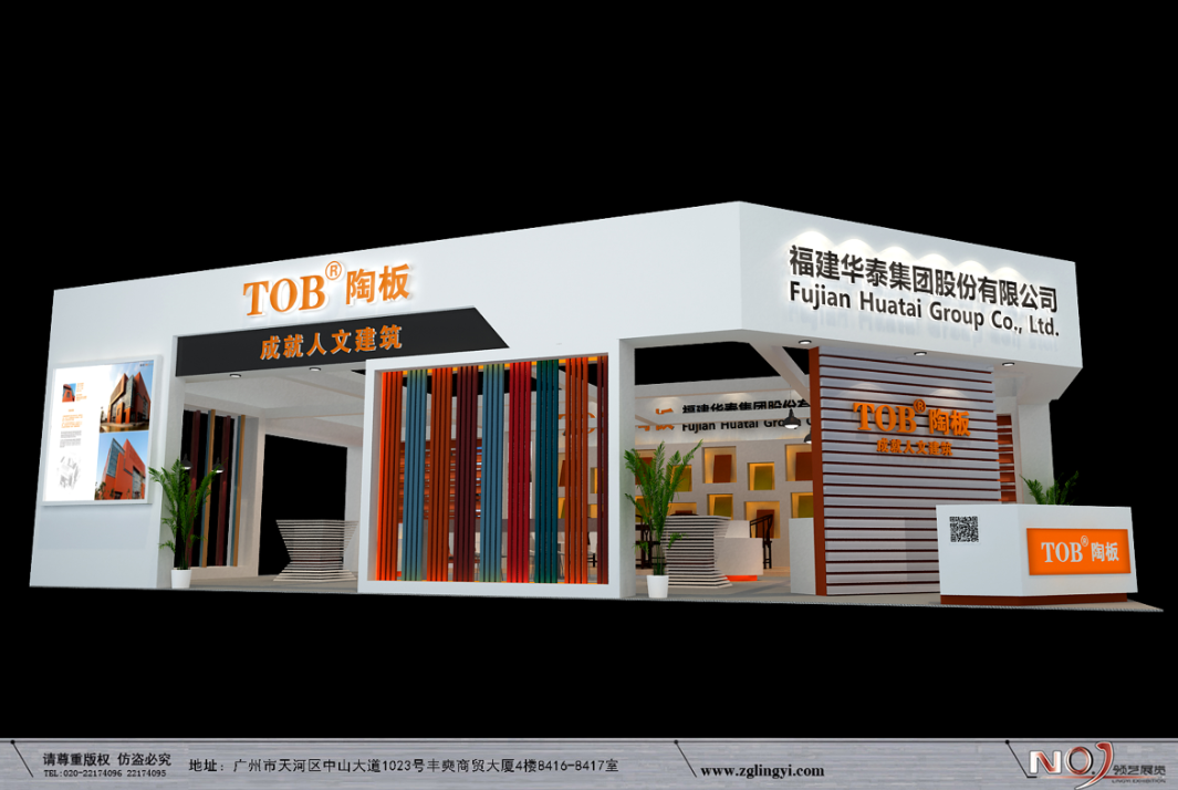 契合福建華泰的品牌形象和產品特性,采用封閉式的造型,再搭配燈具燈光的效果,襯托出展位現代、清新氛圍,突出一種現代、高端的時尚品味。