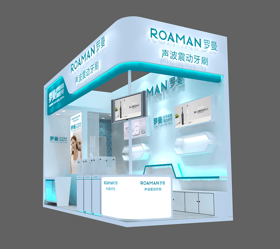 契合羅曼的品牌形象和產(chǎn)品特性,采用簡潔線條、結(jié)構(gòu),再搭配燈具燈光的效果,襯托出展位簡約、時尚的氛圍,突出一種現(xiàn)代、高端的品味。