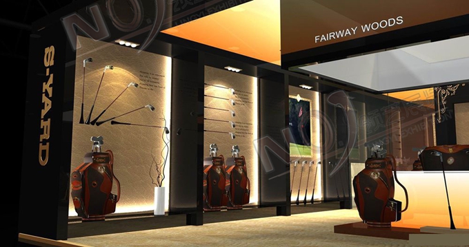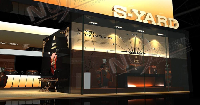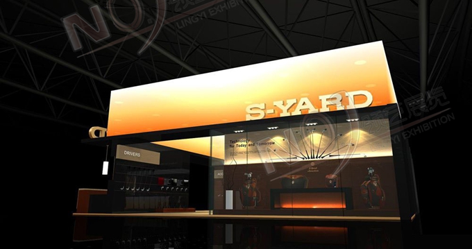 契合的S-YARD品牌形象和產(chǎn)品特性,采用矩形結(jié)構(gòu),再搭配燈具燈光的效果,襯托出展位高端、時(shí)尚的氛圍,突出一種現(xiàn)代、歐美的時(shí)尚品味。