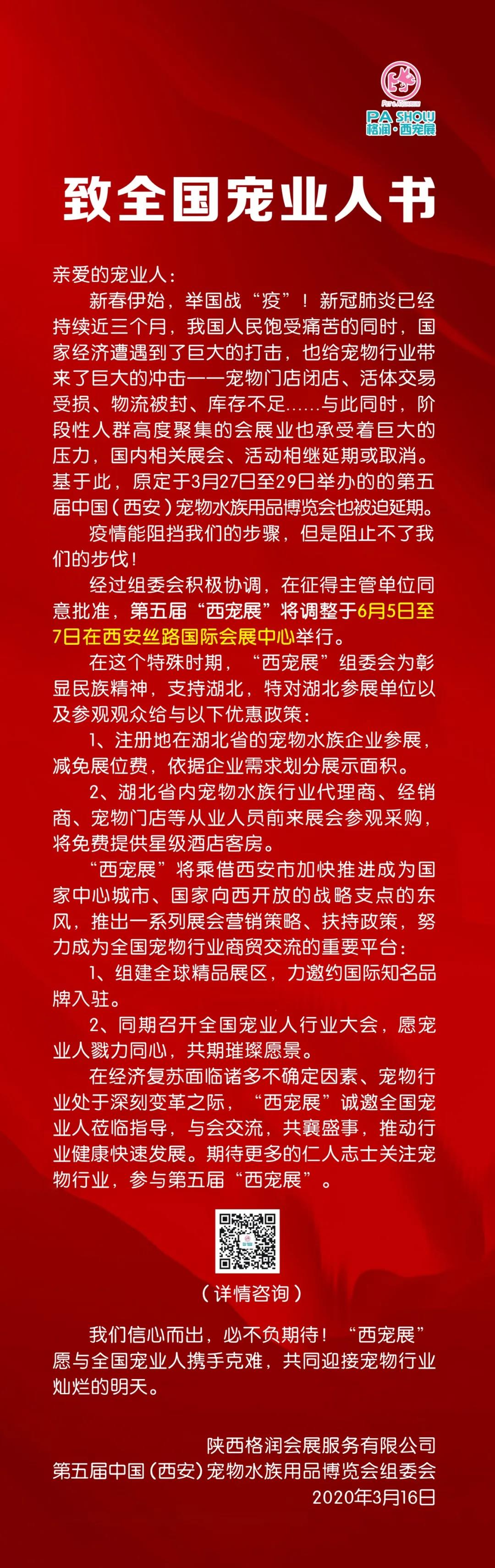 根據寵物展設計搭建公司領藝展覽了解到,受疫情影響,格潤西寵物展定于2020年6月5-7日舉辦,期待6月與您相見!如需寵物展設計請聯系領藝展覽,希望我們能在寵物展搭建上為您添磚加瓦,祝各位朋友收獲多多,滿載而歸!