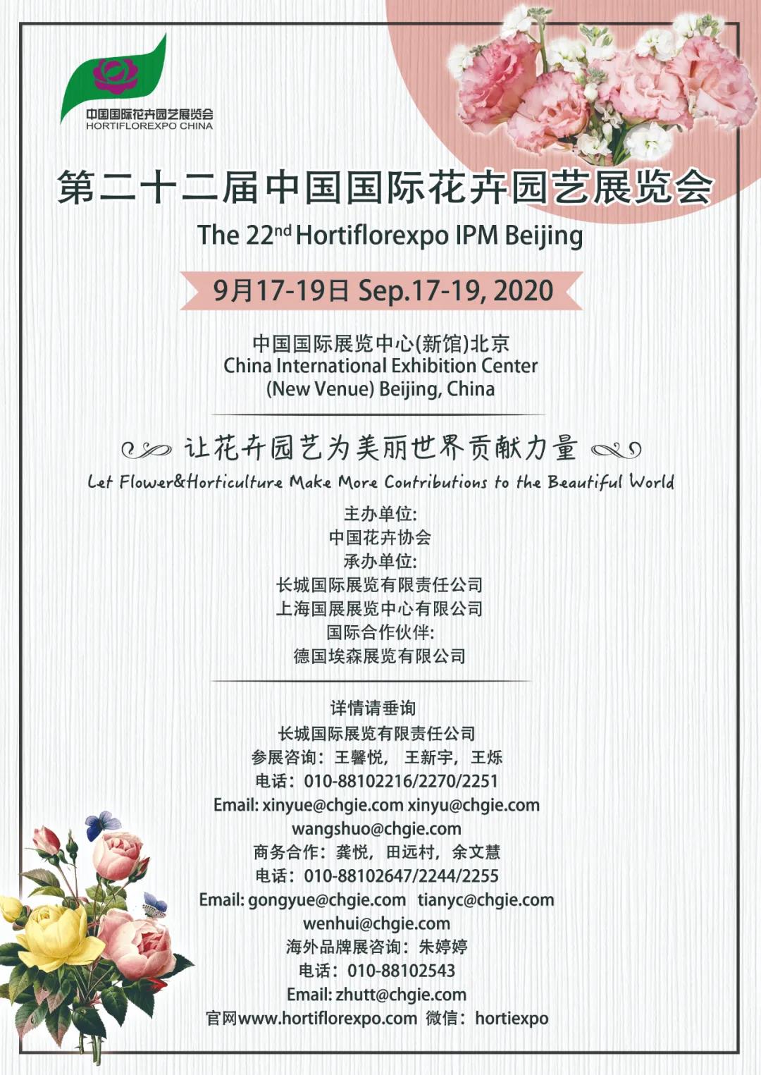根據北京展會設計搭建公司領藝展覽了解到,原定于2020年4月7-9日在北京中國國際展覽中心(新館)舉行的第二十二屆中國國際花卉園藝展覽會及同期活動延期至2020年9月17-19日舉辦。其中,搭建時間為9月15-16日,展期為9月17-19日。如需北京展會設計請聯系領藝展覽,希望我們能在北京展會搭建上為您添磚加瓦,祝各位朋友收獲多多,滿載而歸!