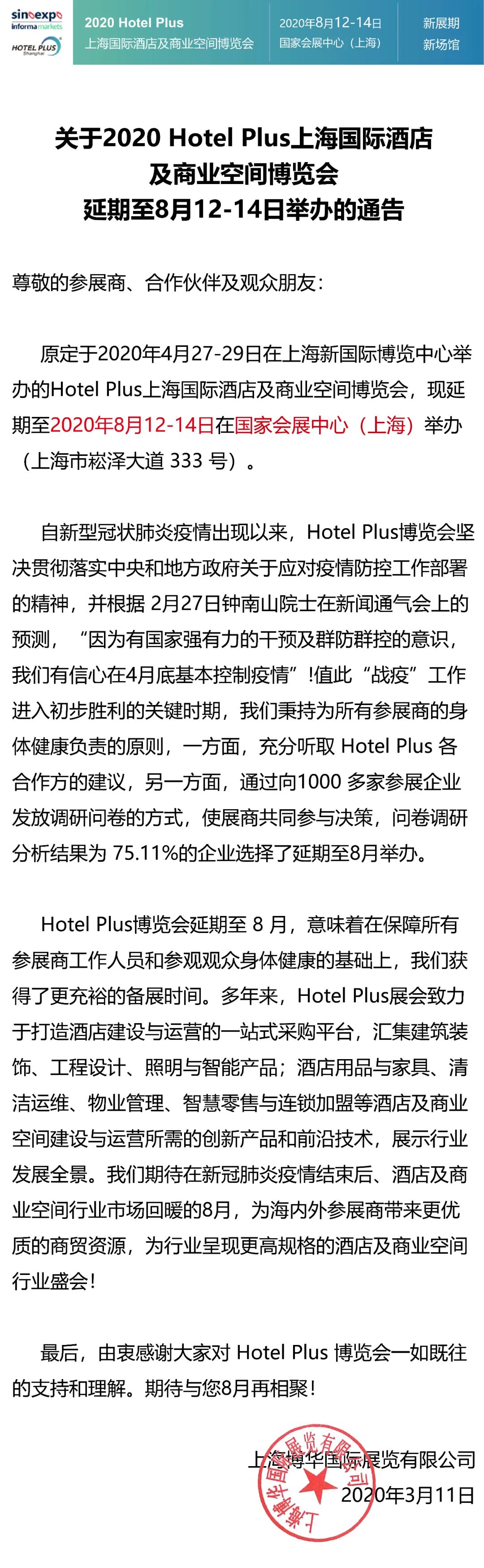 根據上海展會設計搭建公司領藝展覽了解到,原定于3月舉辦的北京InfoComm China 2020展會因受新型冠狀病毒疫情影響而延期。主辦方InfoCommAsia今日宣布,展會將正式改期至2020年9月28-30日(周一至周三)于國家會議中心(CNCC)舉辦。如需上海展會設計請聯系領藝展覽,希望我們能在上海展會搭建上為您添磚加瓦,祝各位朋友收獲多多,滿載而歸!