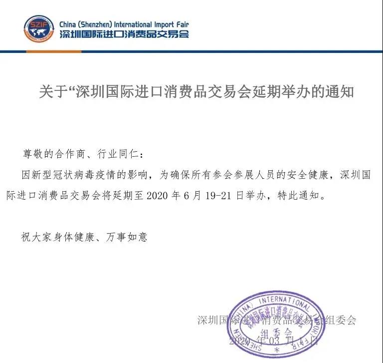 根據深圳展會設計搭建公司領藝展覽了解到,原定于2020年3月24-27日舉辦的深圳國際進口消費品交易會因受疫情影響,將延期至2020年6月19-21日舉辦!如需深圳展會設計請聯系領藝展覽,希望我們能在深圳展會搭建上為您添磚加瓦,祝各位朋友收獲多多,滿載而歸!
