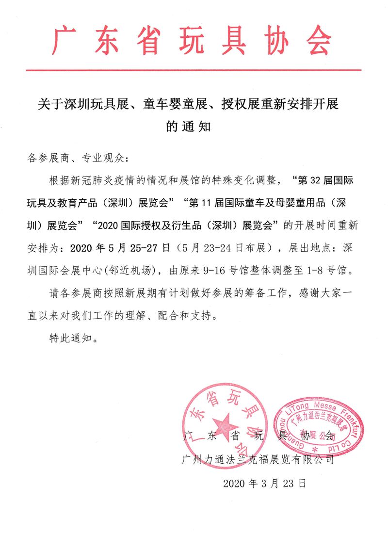 根據(jù)玩具展設(shè)計(jì)搭建公司領(lǐng)藝展覽了解到,根據(jù)新冠肺炎疫情的情況和展館的特殊變化調(diào)整,“第32屆國(guó)際玩具及教育產(chǎn)品(深圳)展覽會(huì)”“第11屆國(guó)際童車及母嬰童用(深圳)展覽會(huì)”“2020國(guó)際授權(quán)及衍生品(深圳)展覽會(huì)”的開(kāi)展時(shí)間重新安排為:2020年5月25-27日(5月23-24日布展),展出地點(diǎn):深圳國(guó)際會(huì)展中心(鄰近機(jī)場(chǎng)),由原來(lái)9-16號(hào)館整體調(diào)整至1-8號(hào)館。如需玩具展設(shè)計(jì)請(qǐng)聯(lián)系領(lǐng)藝展覽,希望我們能在玩具展搭建上為您添磚加瓦,祝各位朋友收獲多多,滿載而歸!