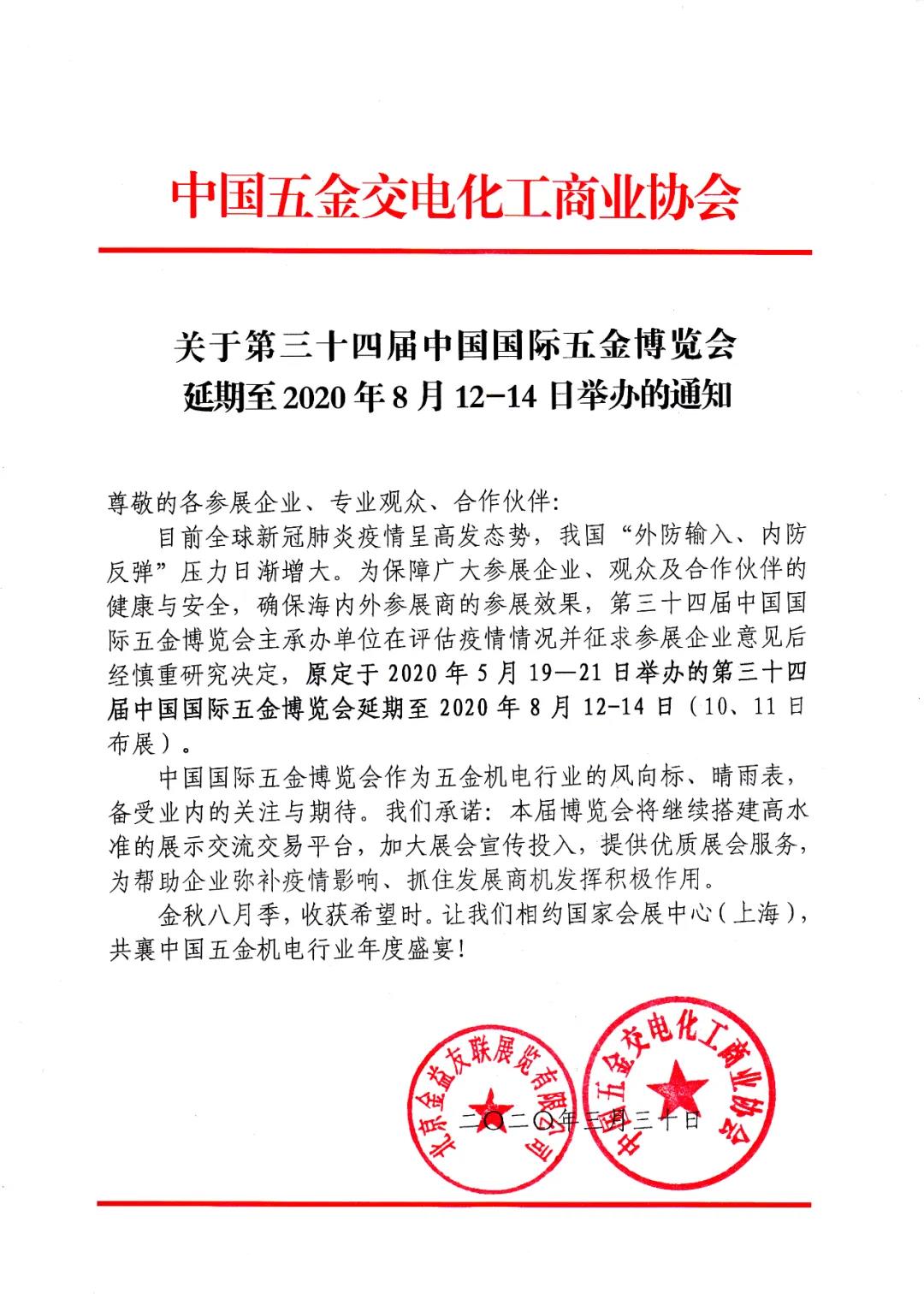 根據(jù)五金展設(shè)計(jì)搭建公司領(lǐng)藝展覽了解到,第三十四屆中國(guó)國(guó)際五金博覽會(huì)延期至2020年8月12-14日舉辦。如需五金展設(shè)計(jì)請(qǐng)聯(lián)系領(lǐng)藝展覽,希望我們能在五金展搭建上為您添磚加瓦,祝各位朋友收獲多多,滿載而歸!