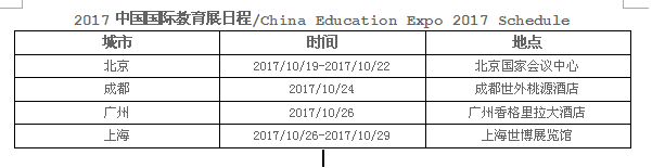 素有“留學(xué)風(fēng)向標(biāo)”之稱(chēng)的中國(guó)國(guó)際教育展,將于2017年10月21日至29日北京和上海等地舉辦。