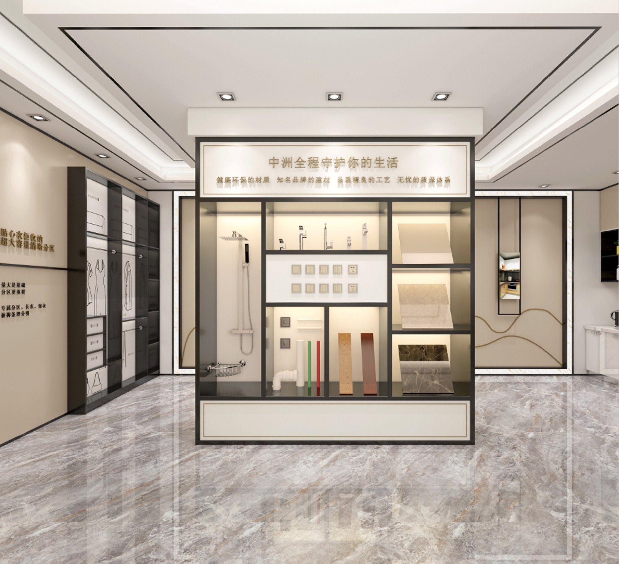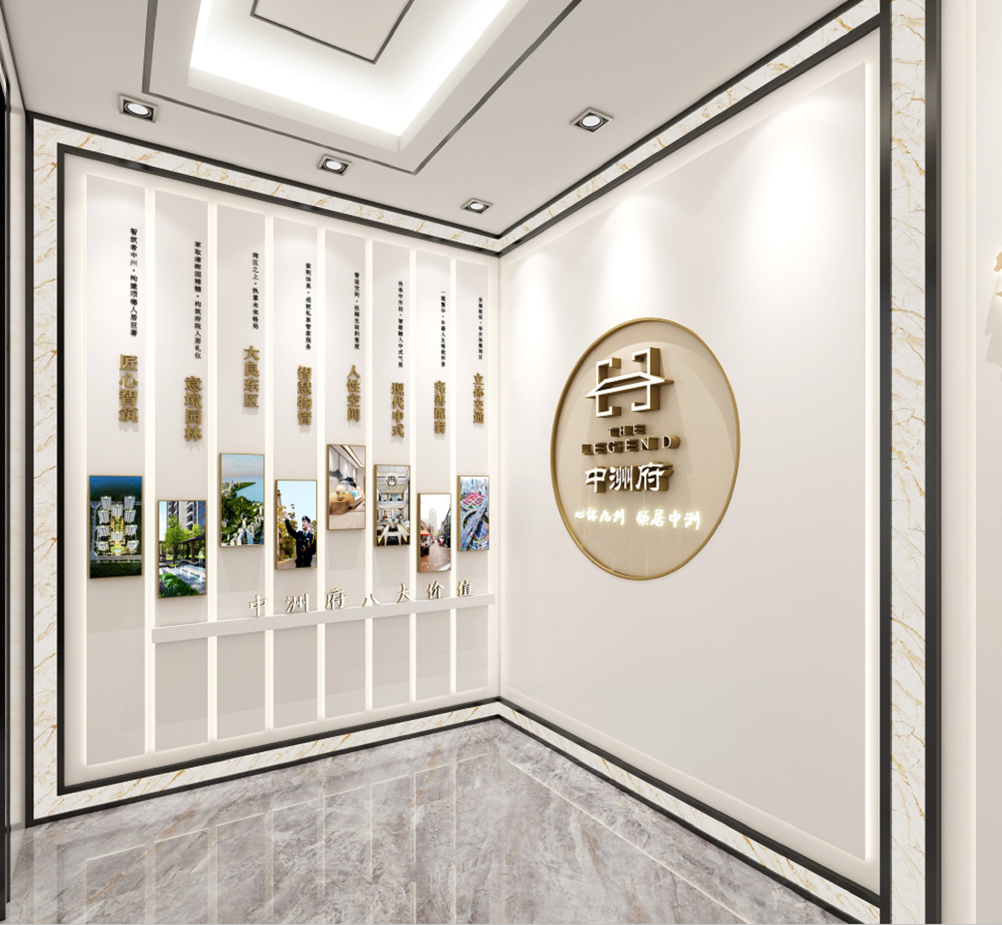 契合中洲府的品牌形象和產品特性,采用開放式結構進行合理的分區,再搭配燈具燈光的效果,襯托出展廳大氣、豪華的氛圍,突出一種簡約、時尚的品味。