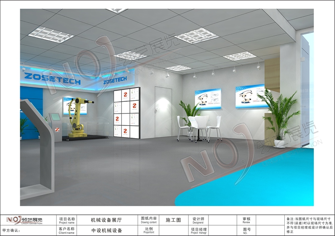 契合的中設(shè)機(jī)械品牌形象和產(chǎn)品特性,采用矩形結(jié)構(gòu),再搭配燈具燈光的效果,襯托出展位高端、時(shí)尚的氛圍,突出一種現(xiàn)代、大氣的時(shí)尚品味。
