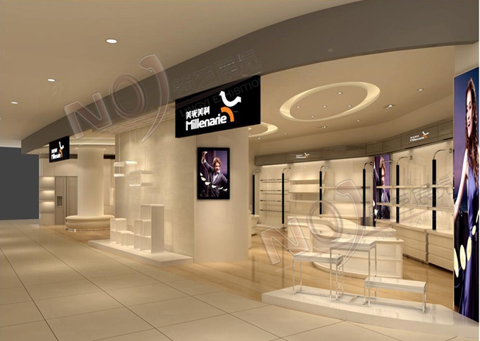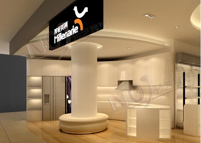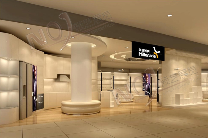 契合的美瓏美利品牌形象和產(chǎn)品特性,采用弧形、矩形結(jié)構(gòu),再搭配燈具燈光的效果,襯托出展位高端、時(shí)尚的氛圍,突出一種現(xiàn)代、歐美的時(shí)尚品味。