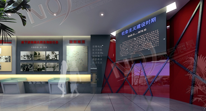 契合的蘭州軍區(qū)史館品牌形象和產(chǎn)品特性,采用矩形結(jié)構(gòu),再搭配燈具燈光的效果,襯托出展位高端、莊重的氛圍,突出一種嚴(yán)肅、肅靜的時(shí)尚品味。
