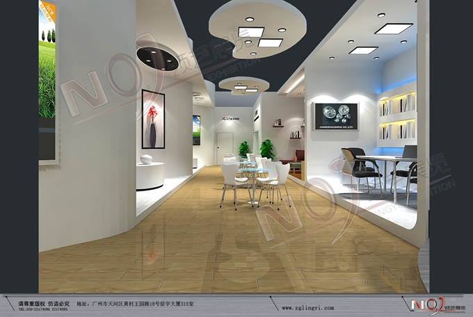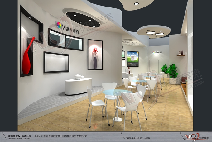 契合嘉美的品牌形象和產(chǎn)品特性,采用弧形、矩形結(jié)構(gòu),再搭配燈具燈光的效果,襯托出展位時(shí)尚、簡約的氛圍,突出一種現(xiàn)代、活力的時(shí)尚品味。