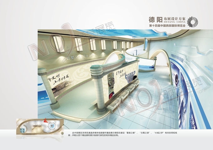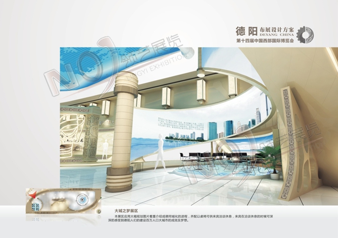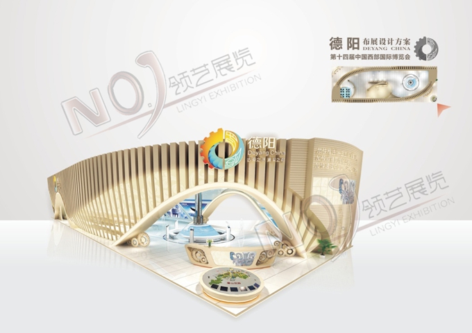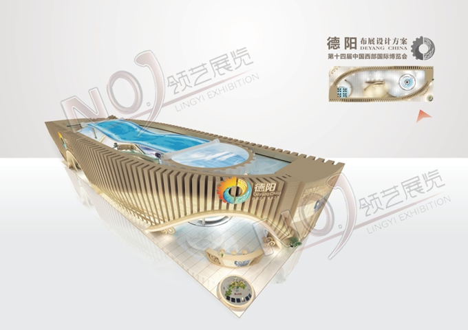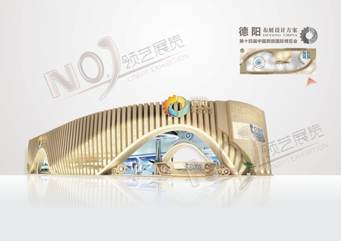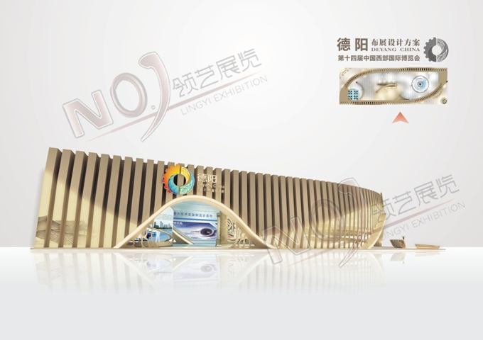 巧妙的運(yùn)用金色、藍(lán)色作為搭配,著重突出德陽建設(shè)的展示,使整個(gè)展位主題鮮明又活力四射。