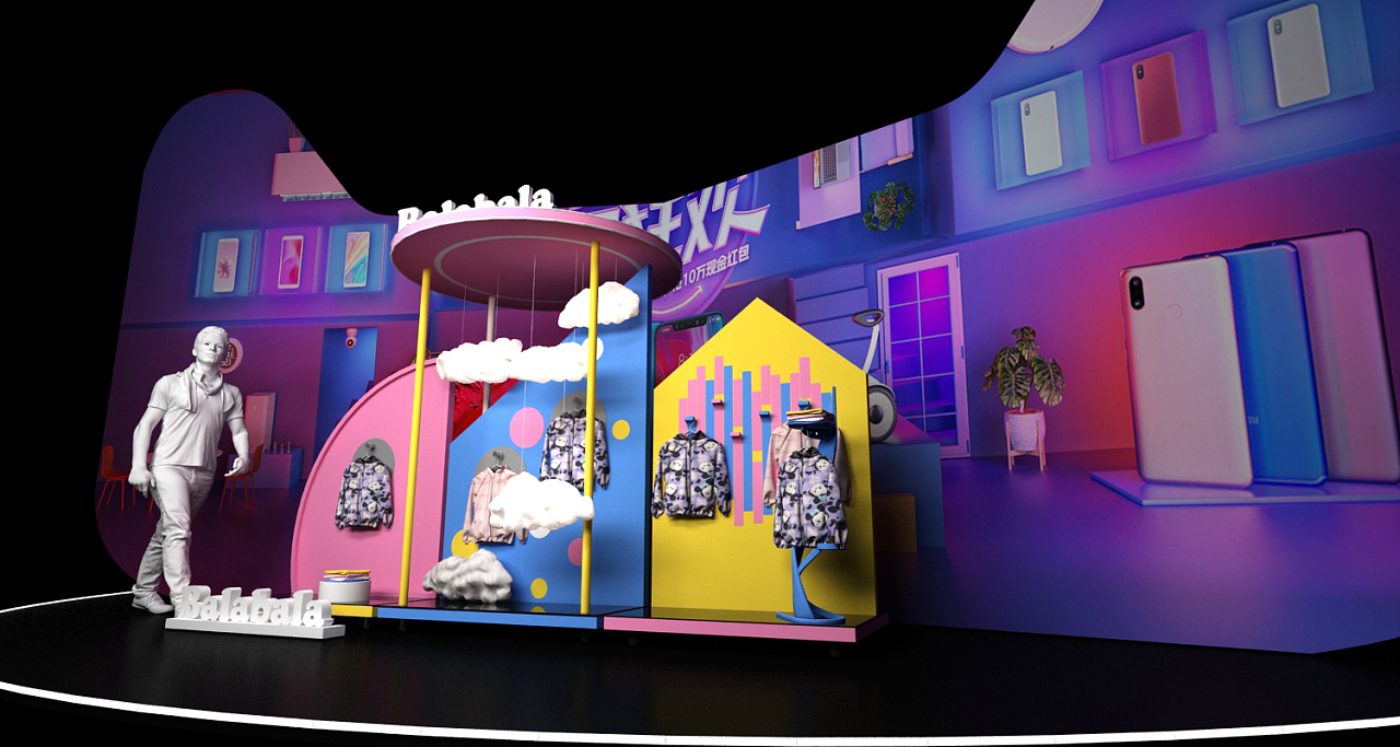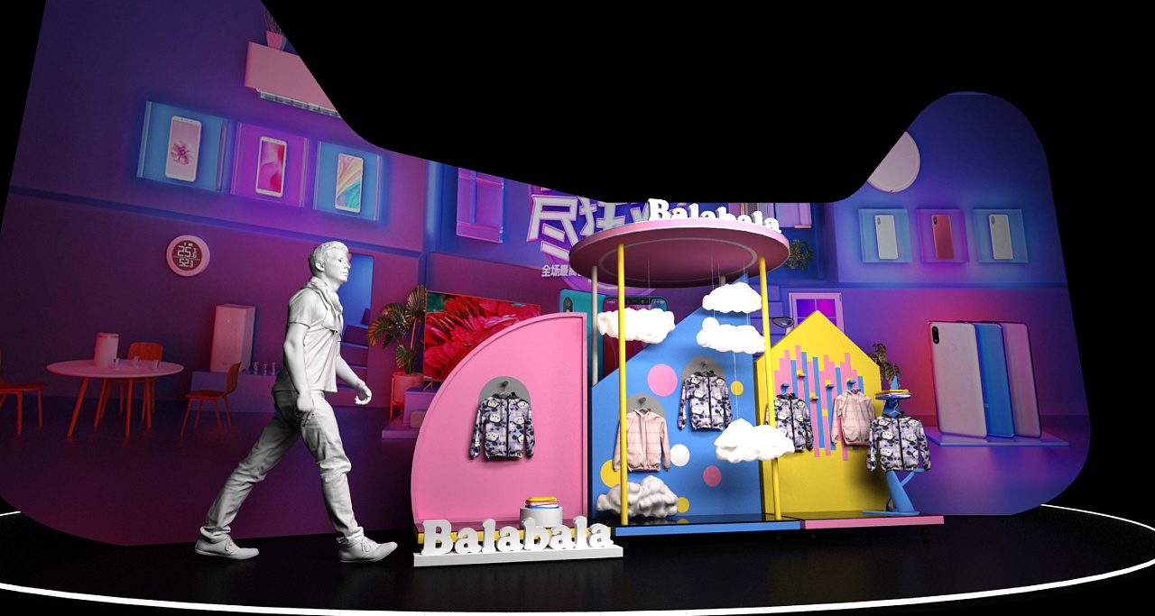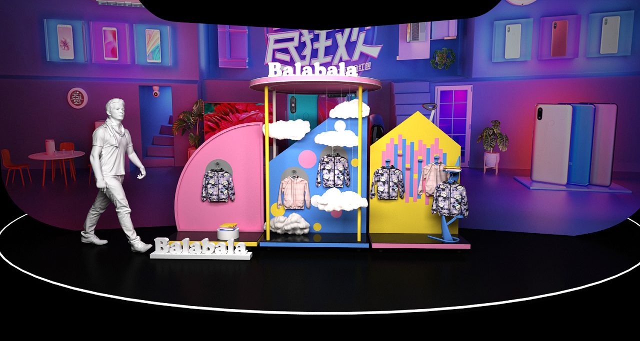 契合巴拉巴拉的品牌形象和產(chǎn)品特性,采用開放式結(jié)構(gòu),再搭配燈具燈光的效果,襯托出直播間大氣、豪華的氛圍,突出一種簡約、時尚的品味。