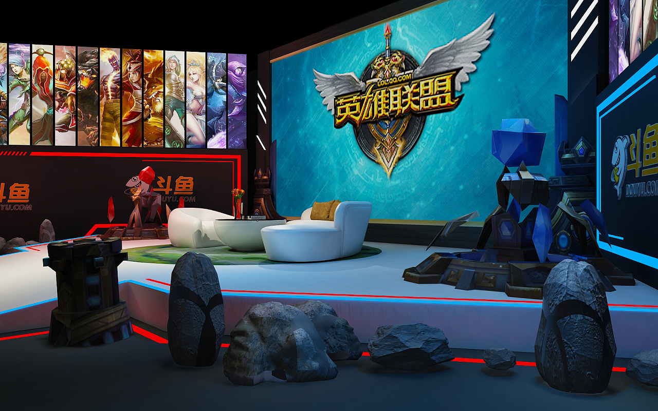 契合斗魚的品牌形象和產(chǎn)品特性,采用開放式結(jié)構(gòu)進(jìn)行合理的分區(qū),再搭配燈具燈光的效果,襯托出直播間大氣、豪華的氛圍,突出一種簡(jiǎn)約、時(shí)尚的品味。